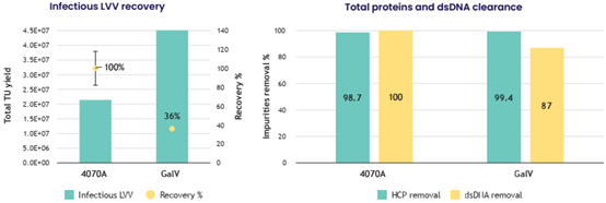 - LentiHERO®成功實現了非VSV-G慢病毒(4047A:100%,GalV:36%)的高效純化。
